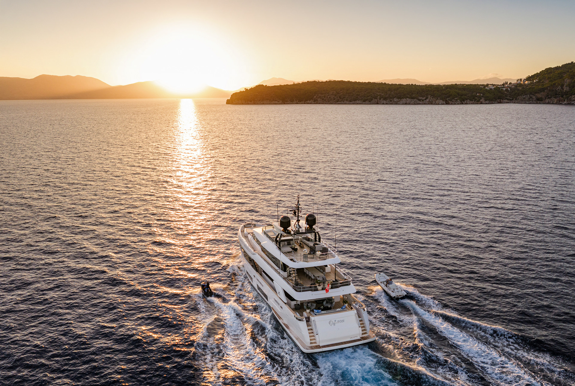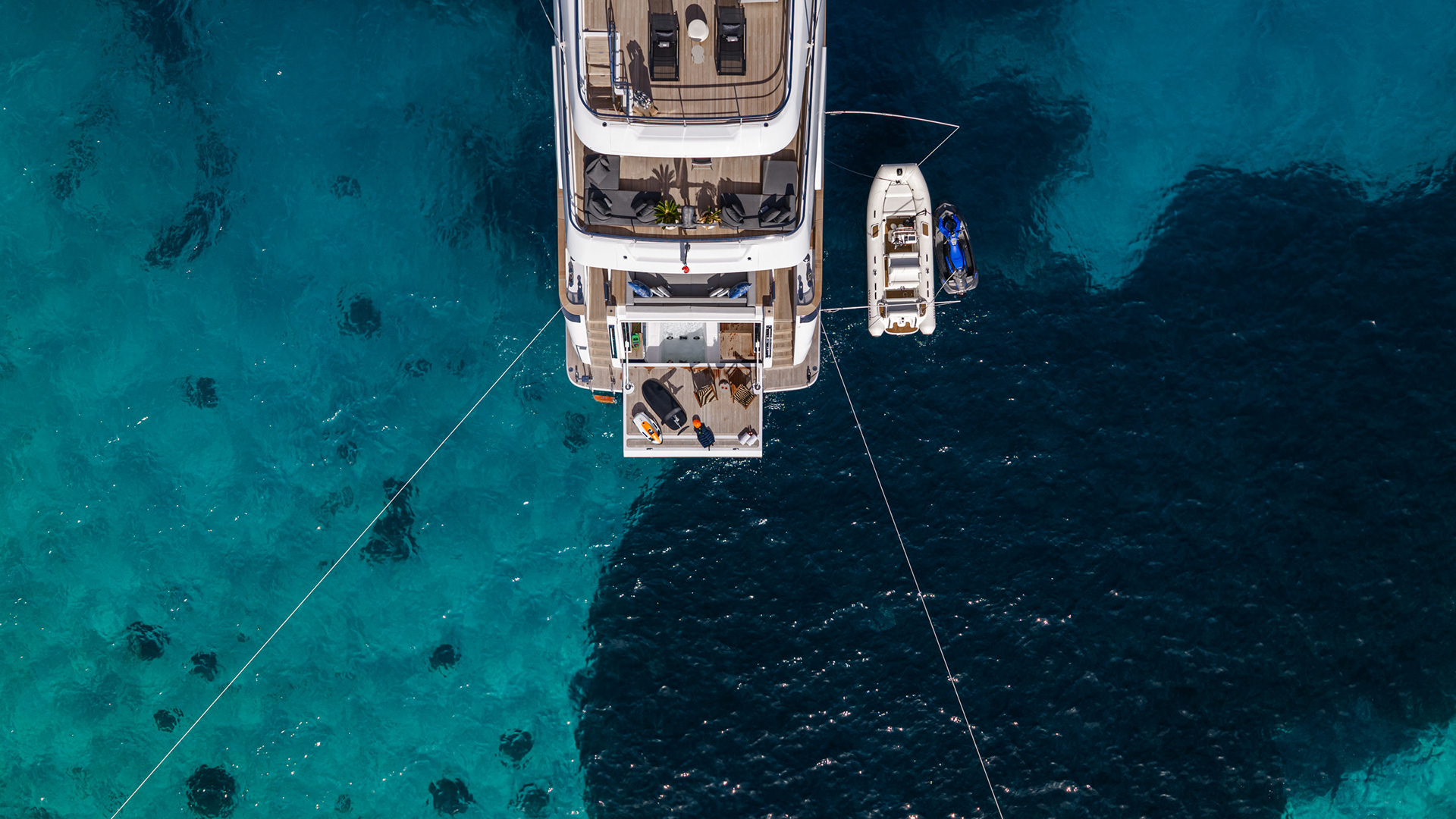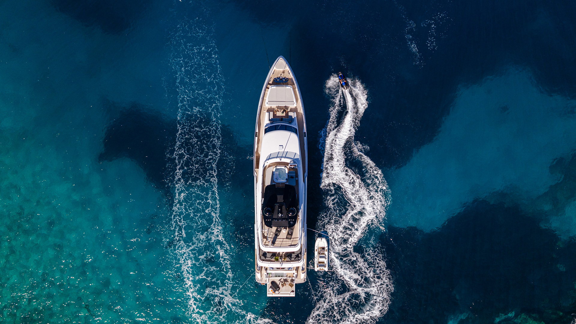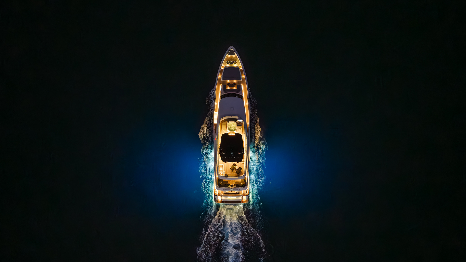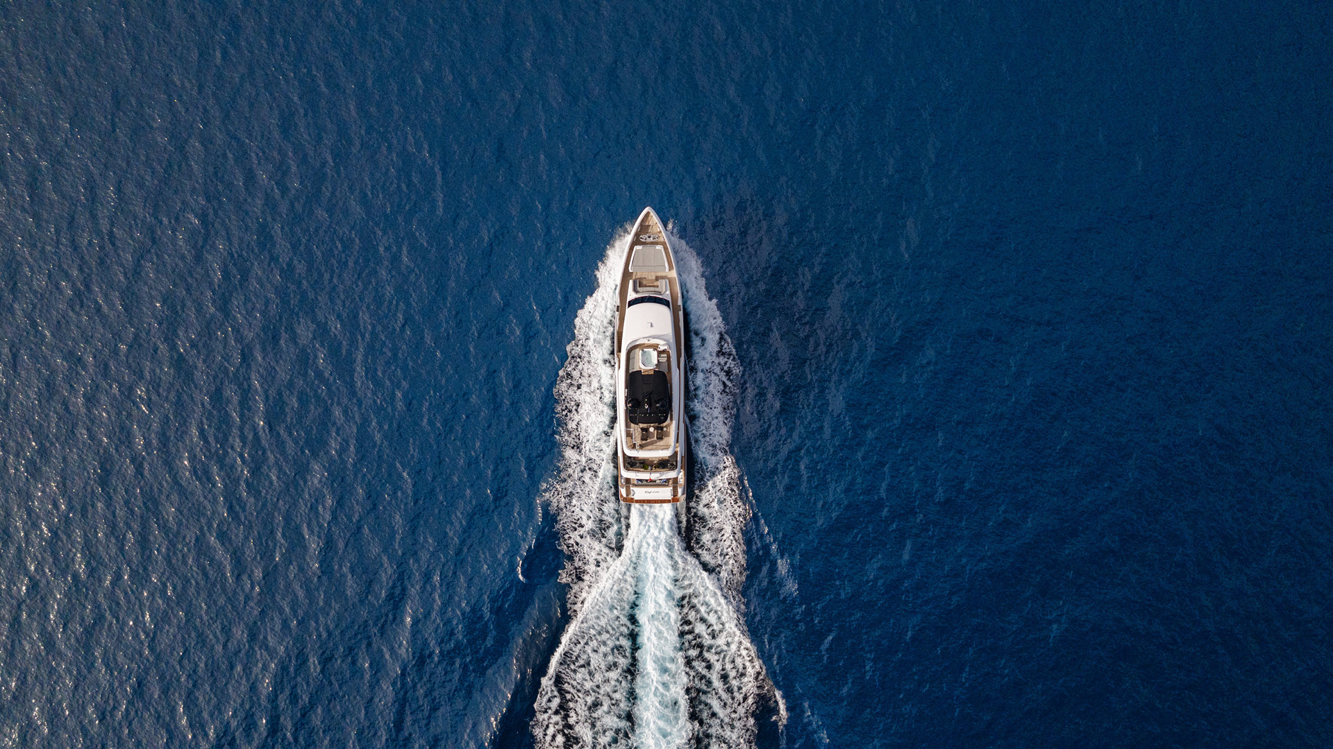 Aerial & Tender Shots: Using drones and shooting from a chase-tender to capture the 4Leon in motion at its 15-knot top speed.