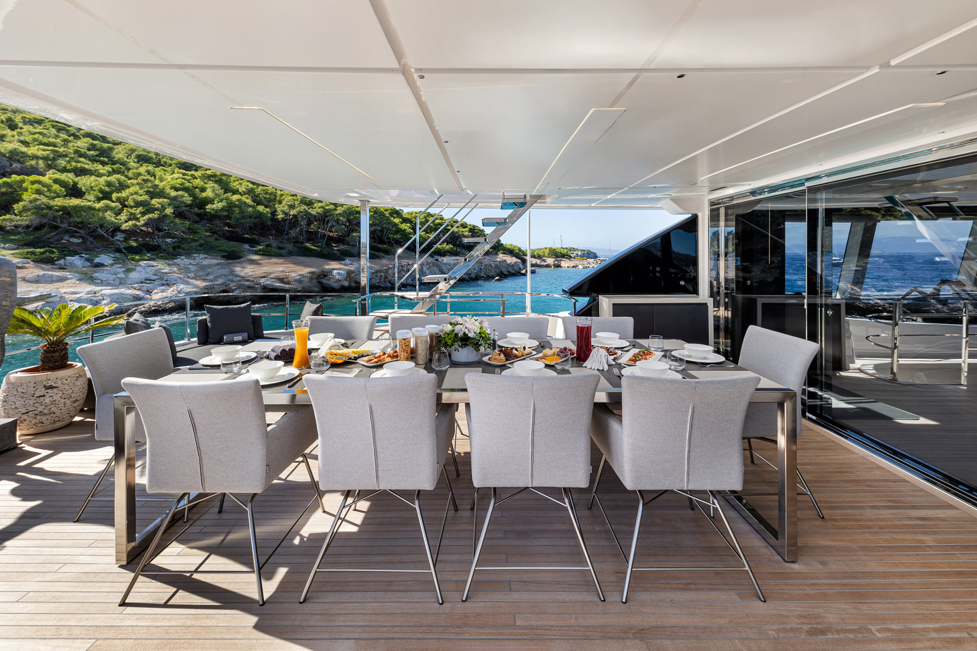 Lifestyle Detail: Working closely with the 5-person crew, we staged everything from "breakfast on deck" to the deployment of water toys, ensuring the yacht felt "lived-in" and ready for charter.