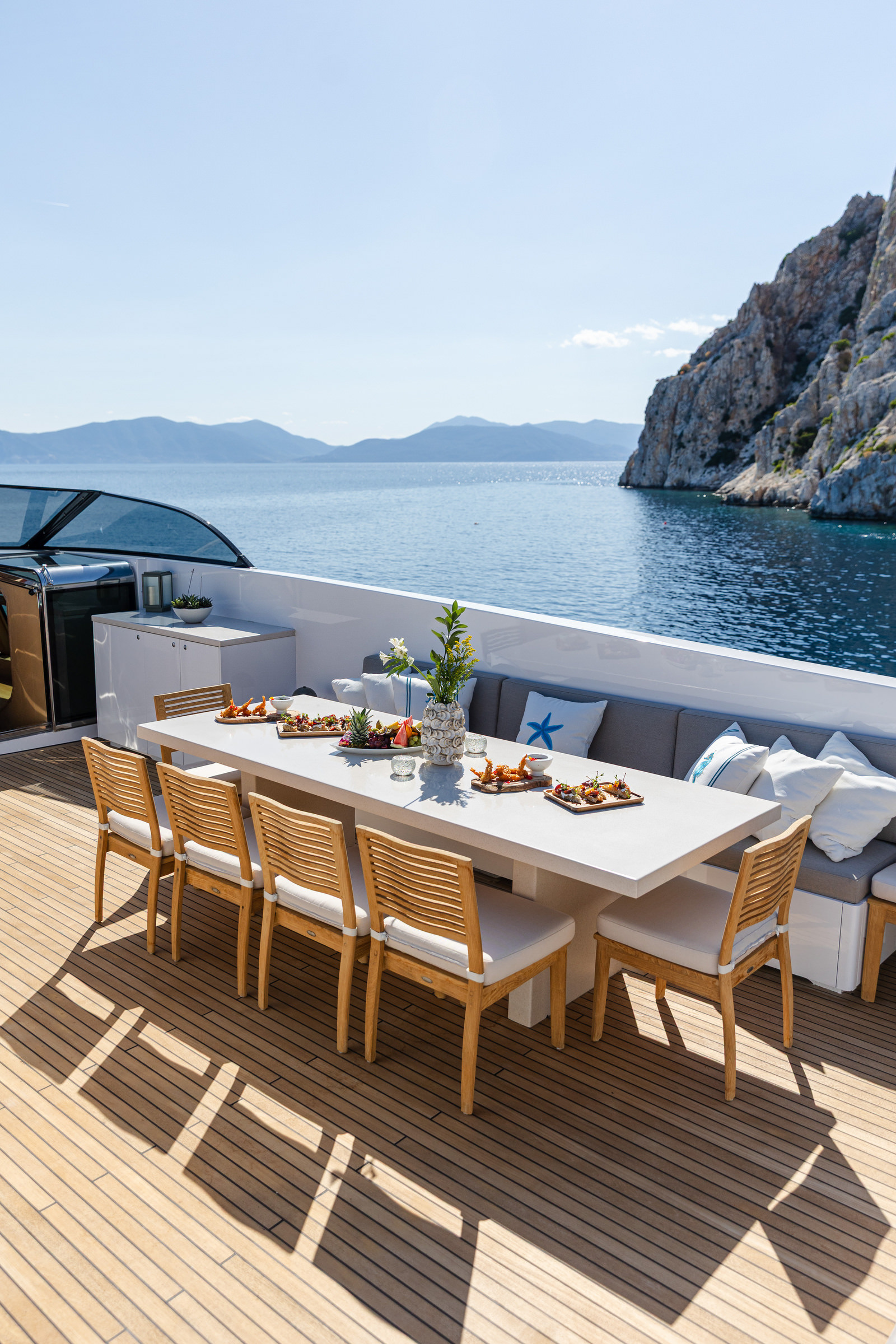 For this production, I collaborated once again with Dimitris Tzankatian, who handled the drone photography and videography. Seeing a yacht like Nova from the air as she cruises the Saronic Gulf really puts her 35-meter scale into perspective.